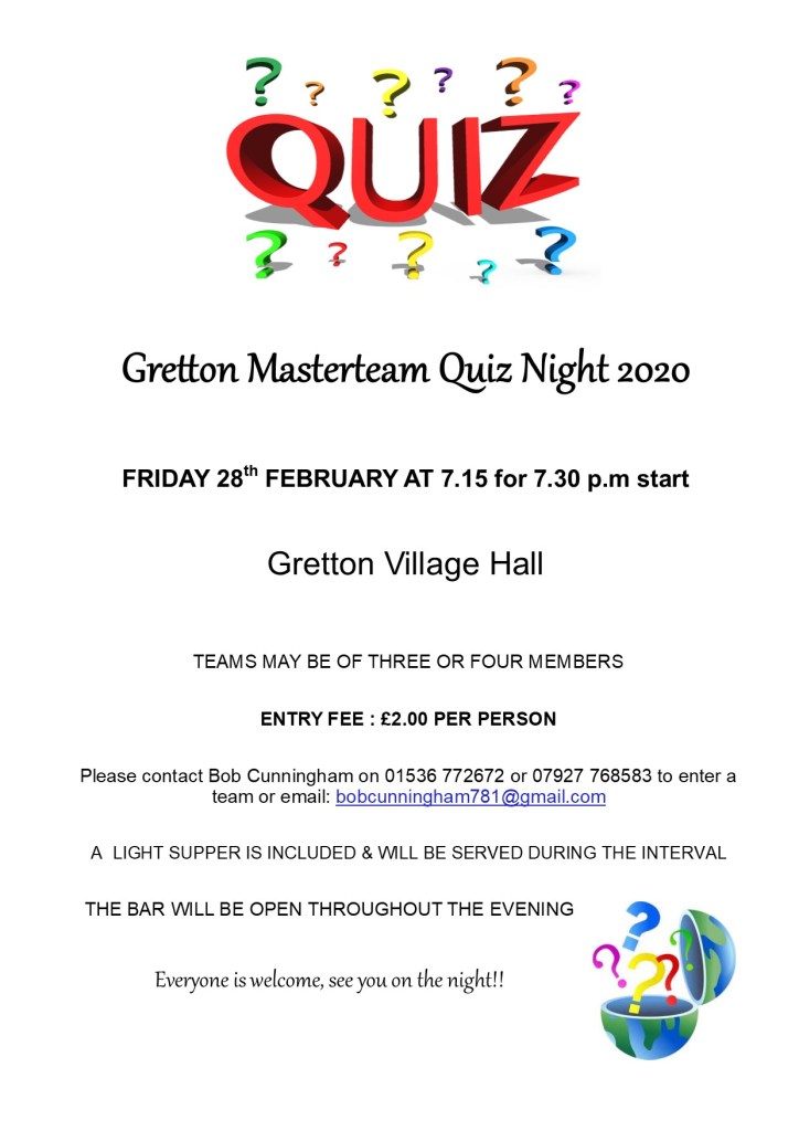Upcoming events at Gretton Village Hall:
